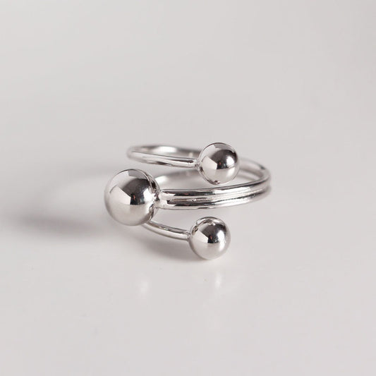 Geometry Three Round Beads Cross 925 Sterling Silver Adjustable Ring