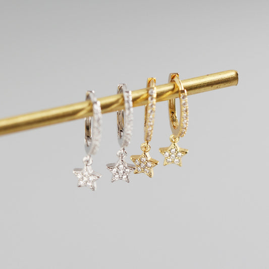 Gift CZ Stars 925 Sterling Silver Drop Dangling Earrings