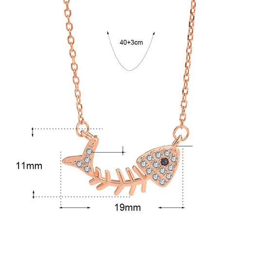 Gift CZ Fish Bones 925 Sterling Silver Necklace