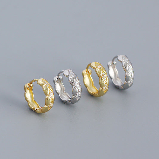 Geometry Rhombus CZ 925 Sterling Silver Huggie Hoop Earrings