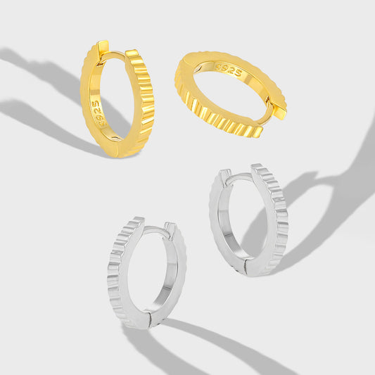 Geometry Round Irregular Gear 925 Sterling Silver Hoop Earrings