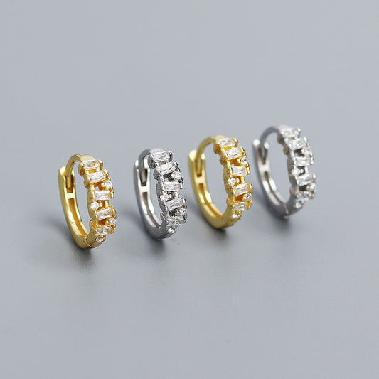 Geometry Rectangle CZ 925 Sterling Silver Stacker Hoop Earrings