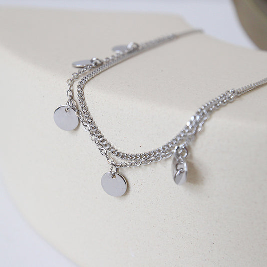 Hot Double Layers Sequins 925 Sterling Silver Anklet