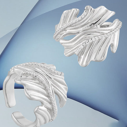 Hot Irregular CZ Feather 925 Sterling Silver Adjustable Ring