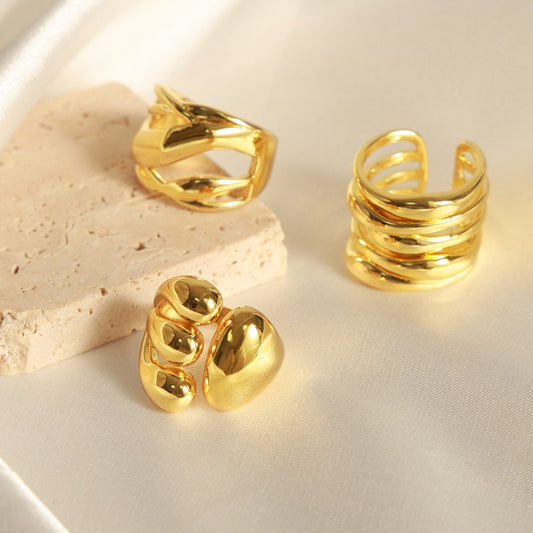 New Geometry Circular Arc 925 Sterling Silver Adjustable Ring