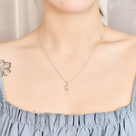 New CZ Crescent Moon Magic Wand 925 Sterling Silver Necklace