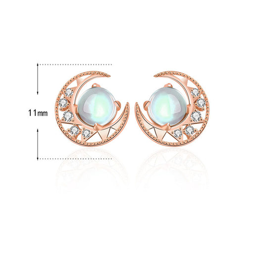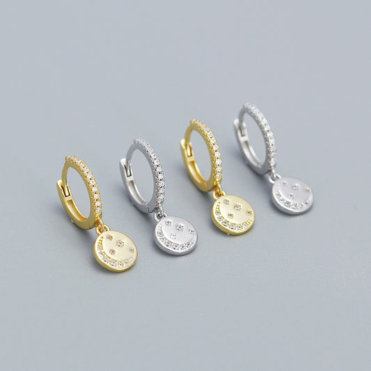New Shining CZ Crescent Moon Stars 925 Sterling Silver Drop Dangling Earrings