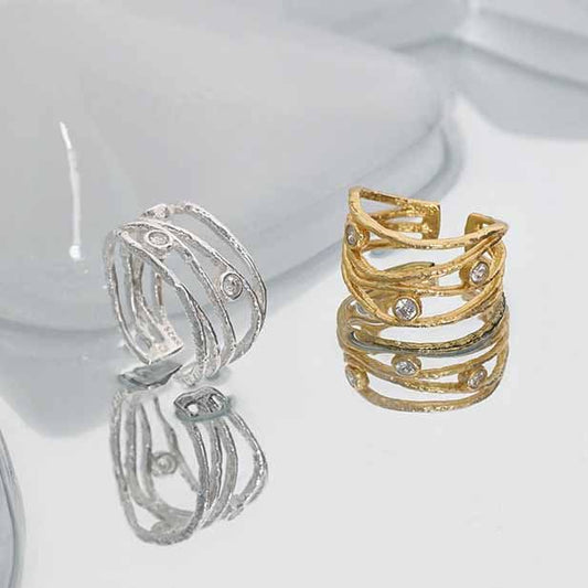 New CZ Hollow Lines Wide 925 Sterling Silver Adjustable Ring