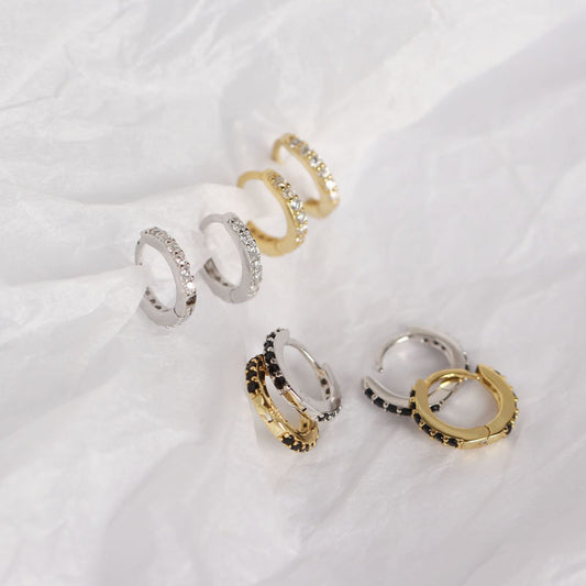 Office Micro Setting CZ Lines 925 Sterling Silver Hoop Earrings