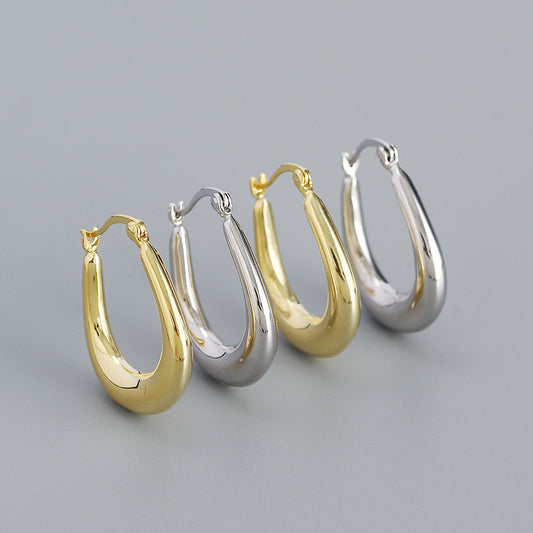 Office U Shape Simple 925 Sterling Silver Hoop Earrings