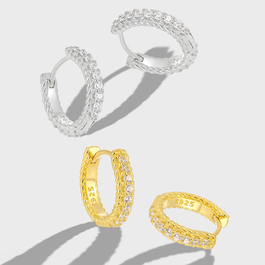 Office Twisted Round CZ 925 Sterling Silver Hoop Earrings