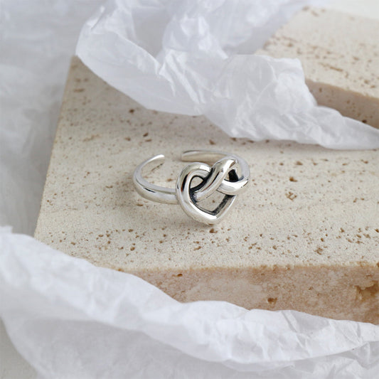 Retro Hollow Heart Knot 925 Sterling Silver Adjustable Ring