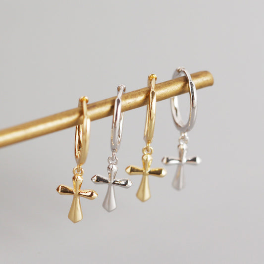 Simple Cross 925 Sterling Silver Dangling Earrings