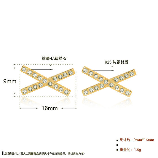 Simple CZ Letter X Cross 925 Sterling Silver Stud Earrings