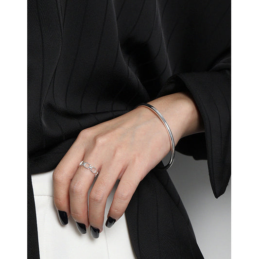 Simple 3.2mm Geometry No Plating 925 Sterling Silver Bangle