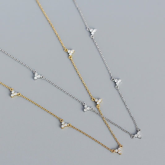 Simple CZ Three Leaf Clovers 925 Sterling Silver Necklace