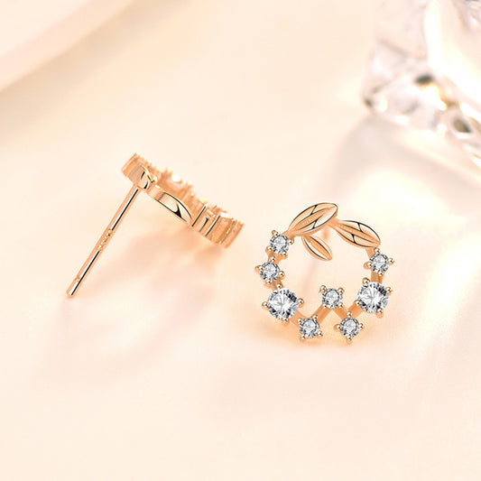 Simple Hollow CZ Garland 925 Sterling Silver Stud Earrings