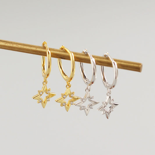 Simple Hollow CZ Quadrangular Star 925 Sterling Silver Drop Dangling Earrings
