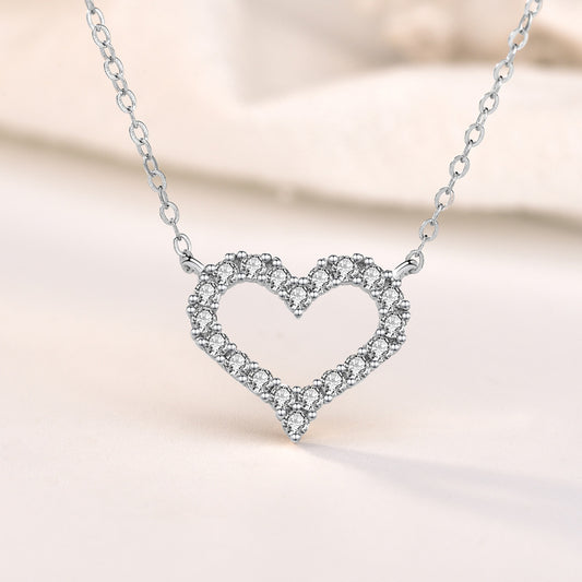 Simple Hollow CZ Heart 925 Sterling Silver Necklace