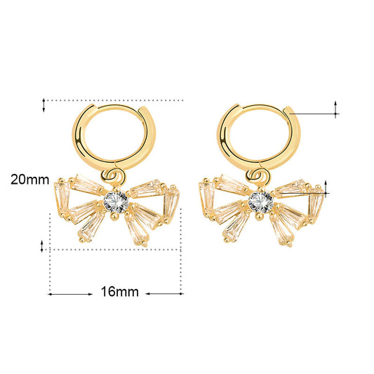 Sweet Asymmetry CZ Bowknot 925 Sterling Silver Dangling Earrings