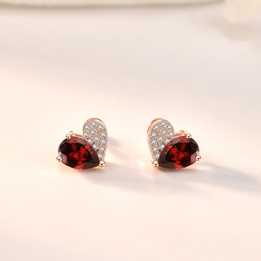 Sweet Asymmetry CZ Heart 925 Sterling Silver Stud Earrings