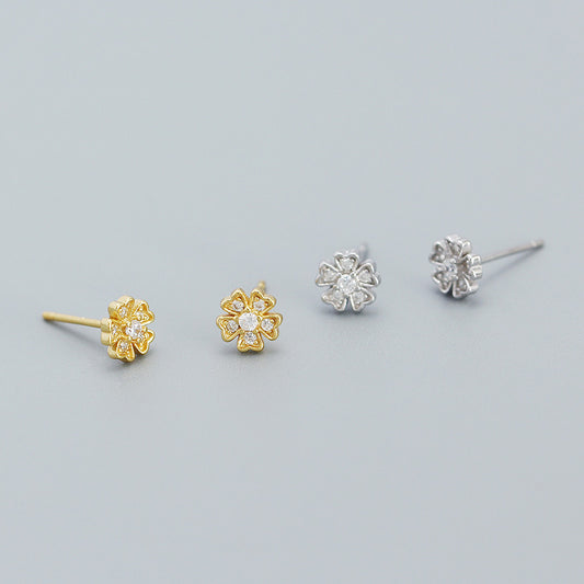 Sweet CZ Plum Blossom Flowers 925 Sterling Silver Stud Earrings