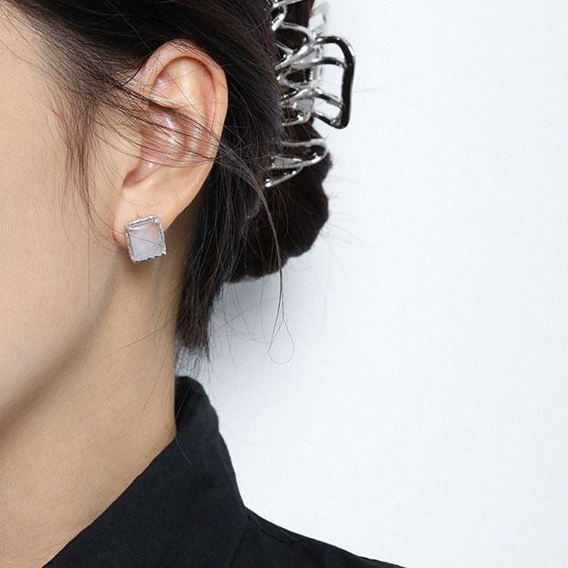 Geometry Natural Crystal Rectangle 925 Sterling Silver Stud Earrings
