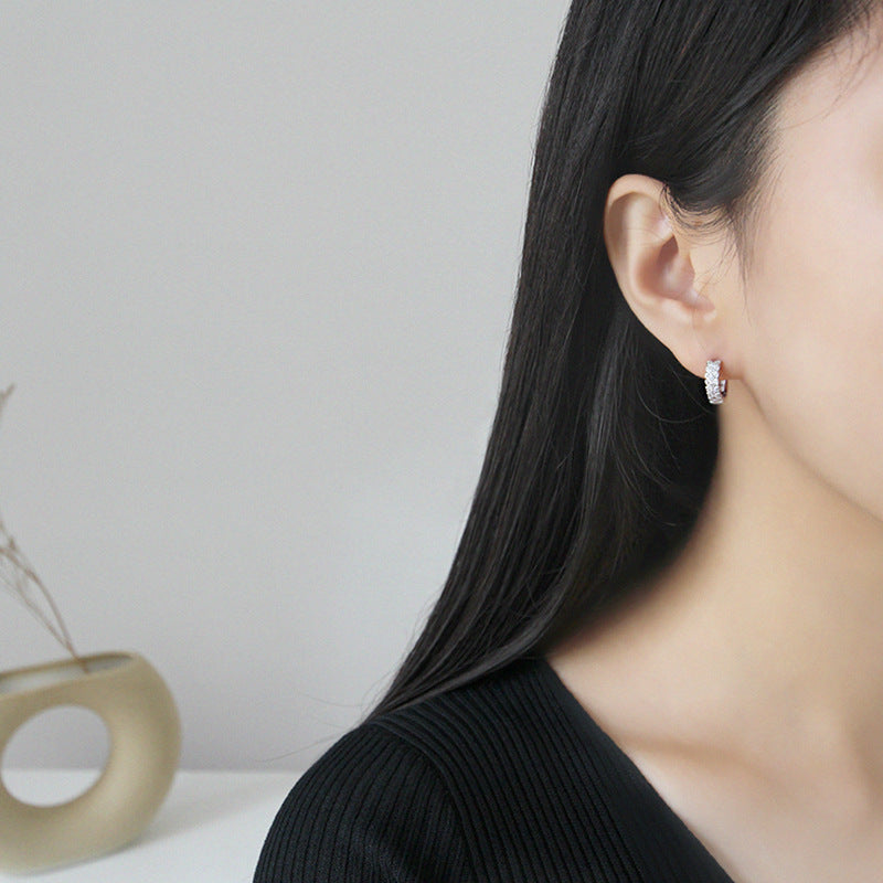 New Geometry CZ Mini Circle 925 Sterling Silver Huggie Hoop Earrings