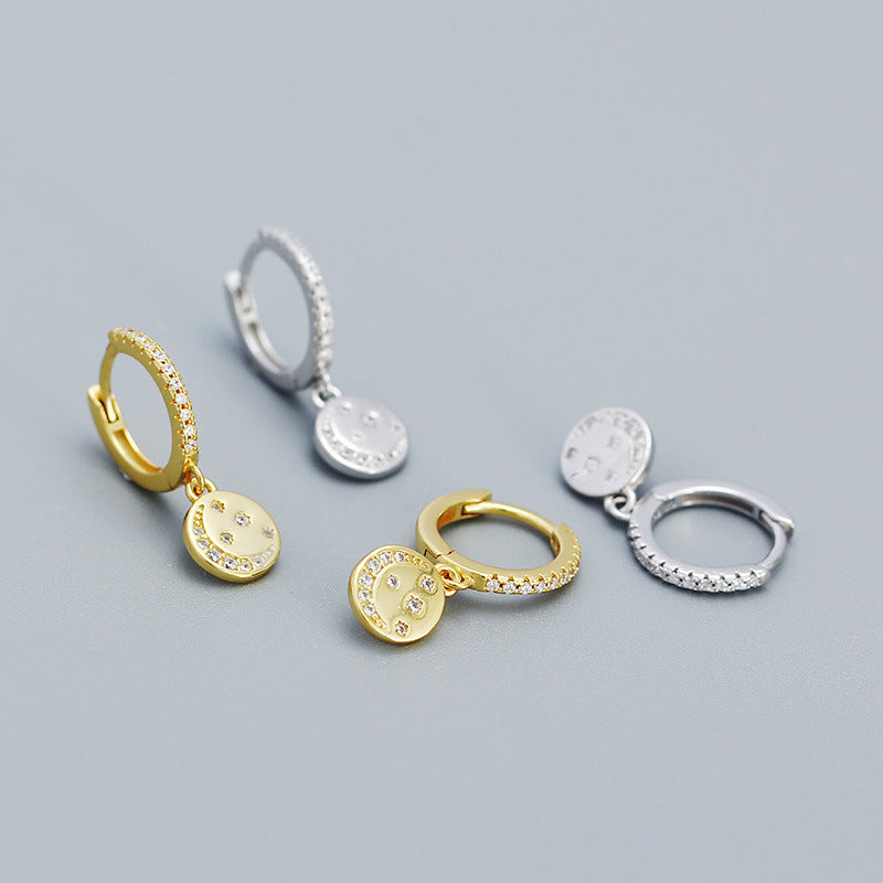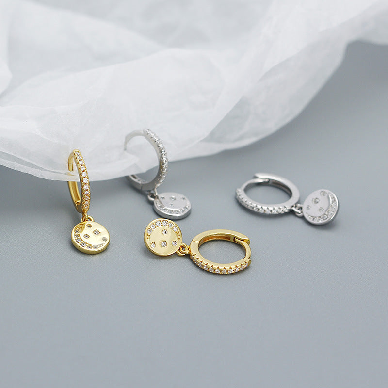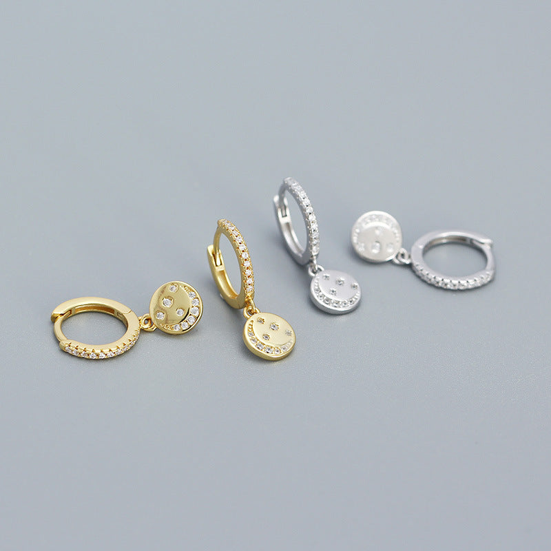 New Shining CZ Crescent Moon Stars 925 Sterling Silver Drop Dangling Earrings