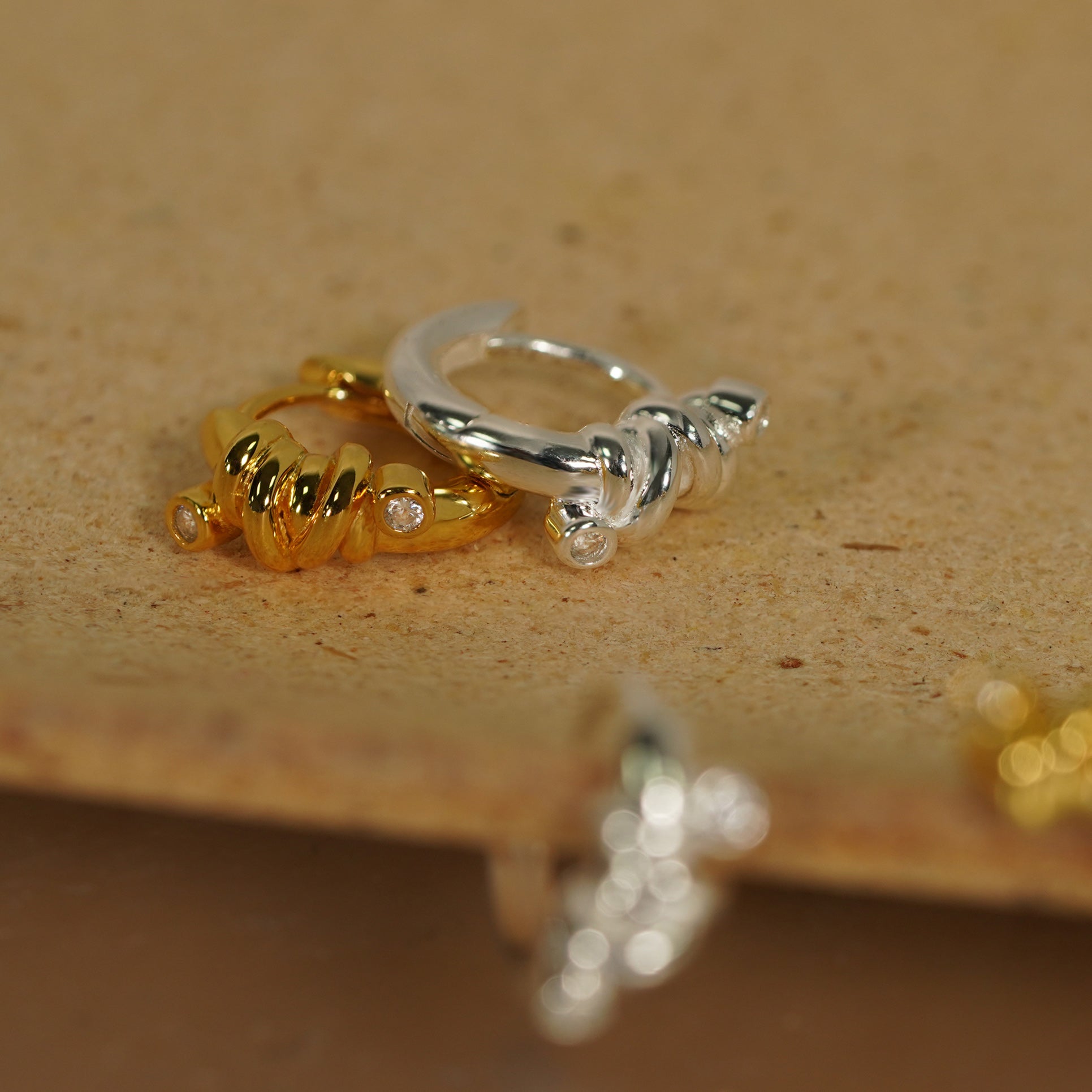 Party Mini Twisted Lines Knot 925 Sterling Silver Hoop Earrings