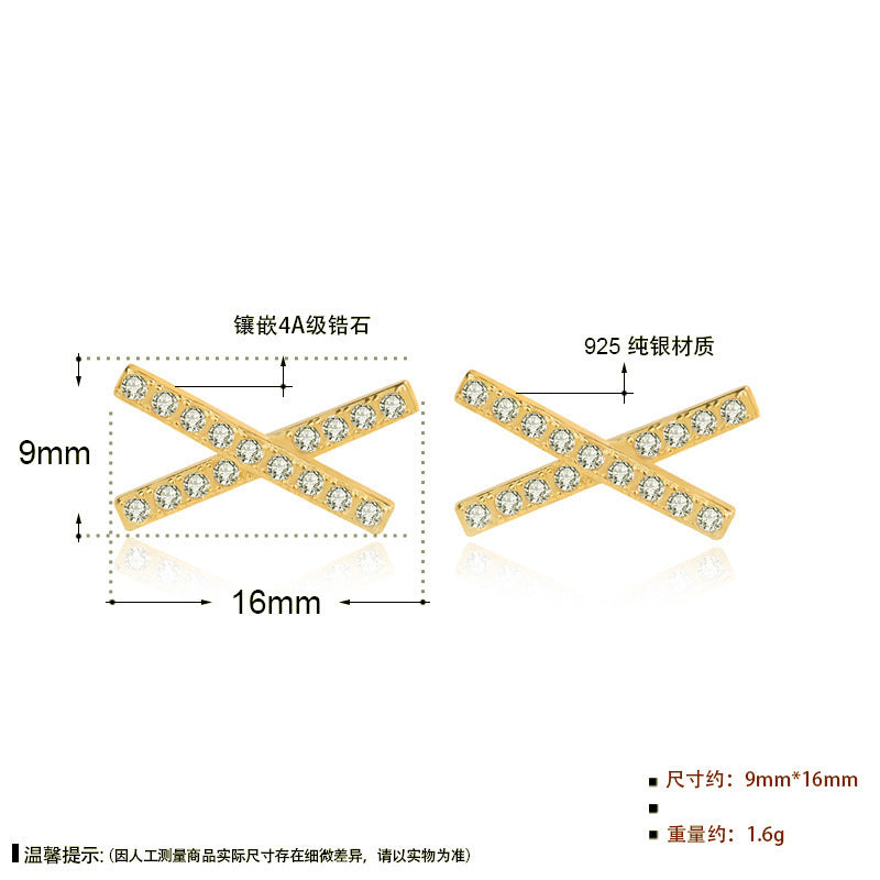 Simple CZ Letter X Cross 925 Sterling Silver Stud Earrings